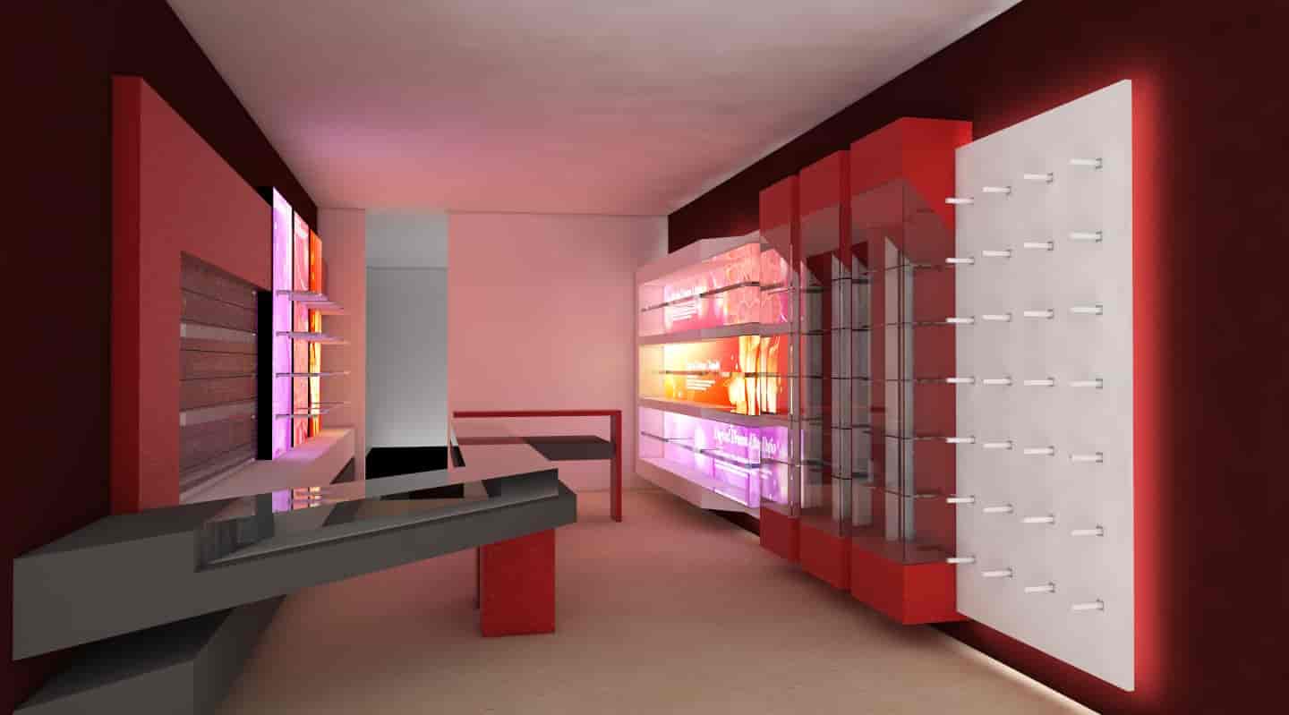 Strategic placement of shelves and displays transforms the pharmacy into an inviting space. A combination of open shelving and glass displays allows for easy browsing, making finding the right product a breeze.