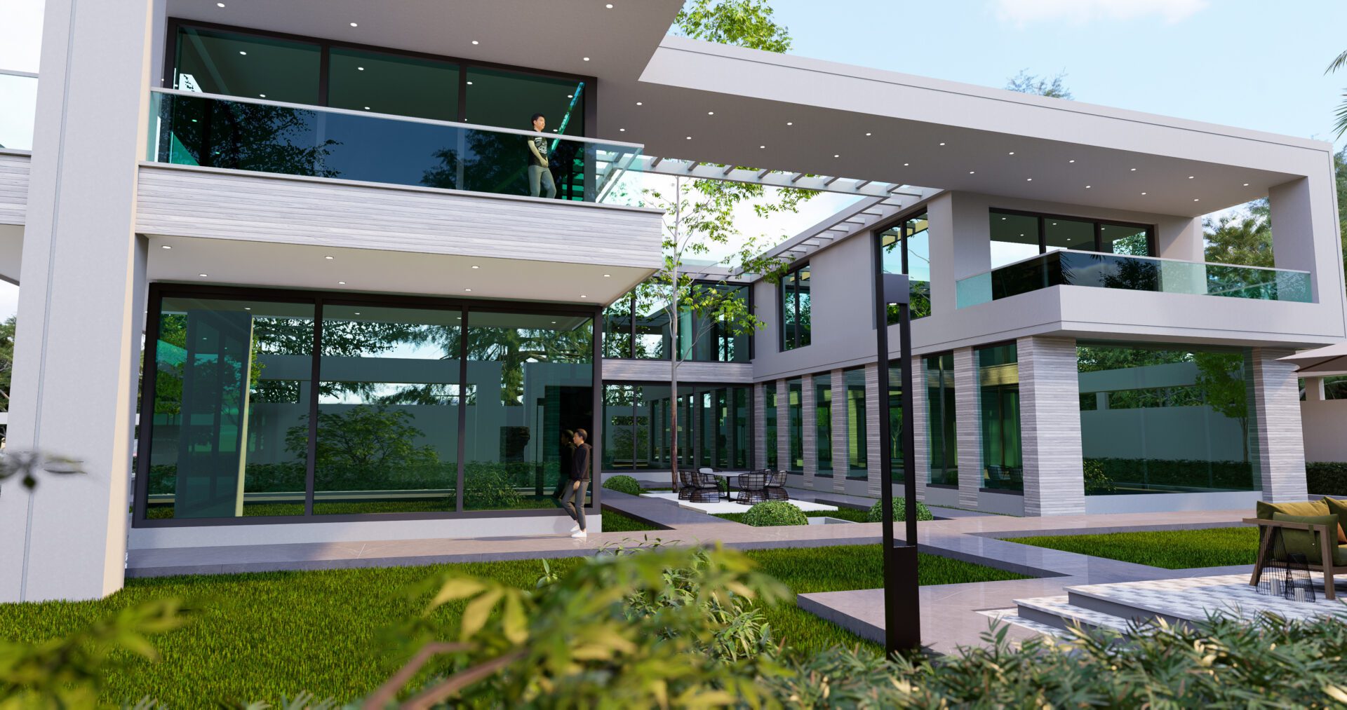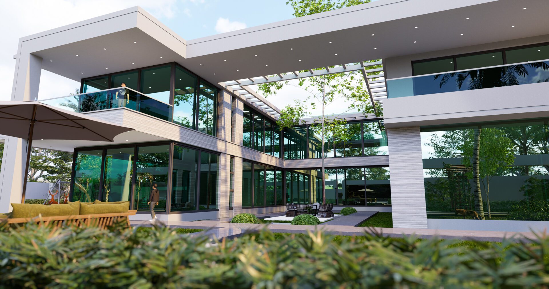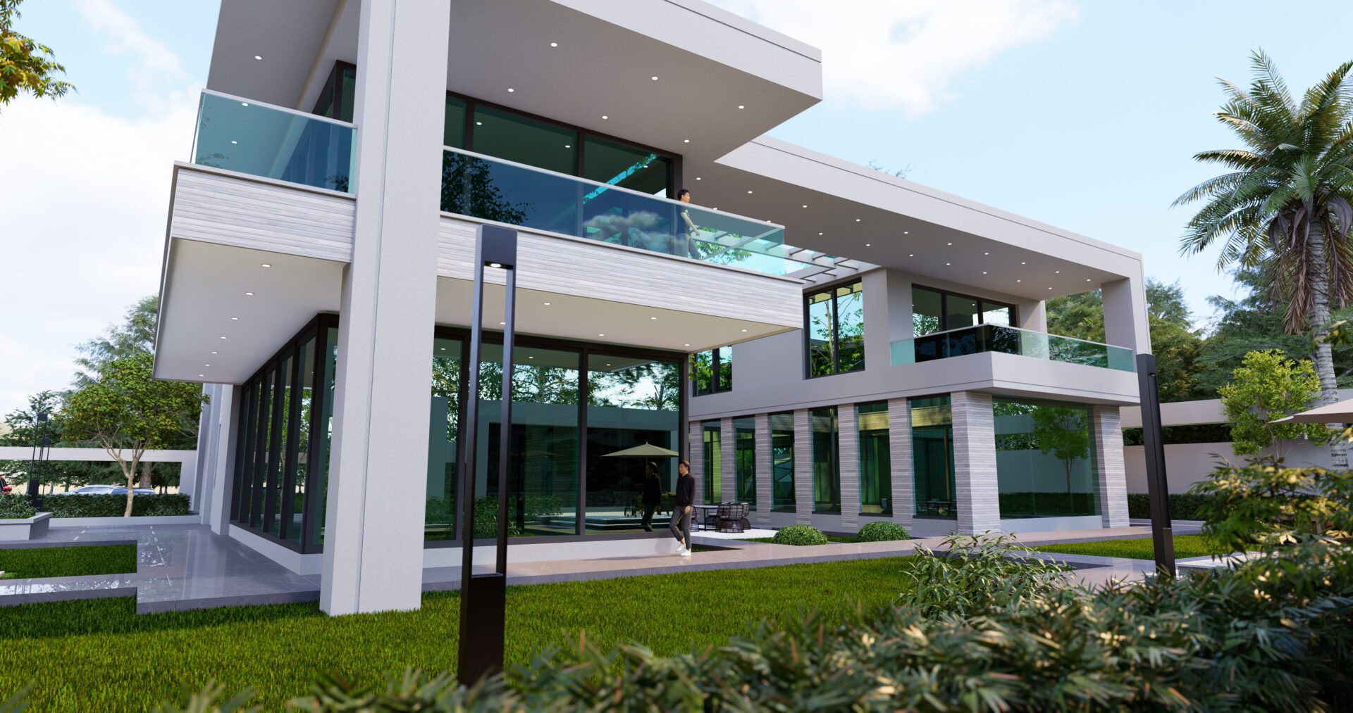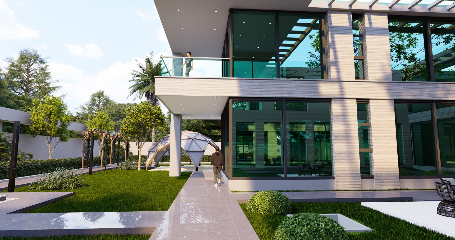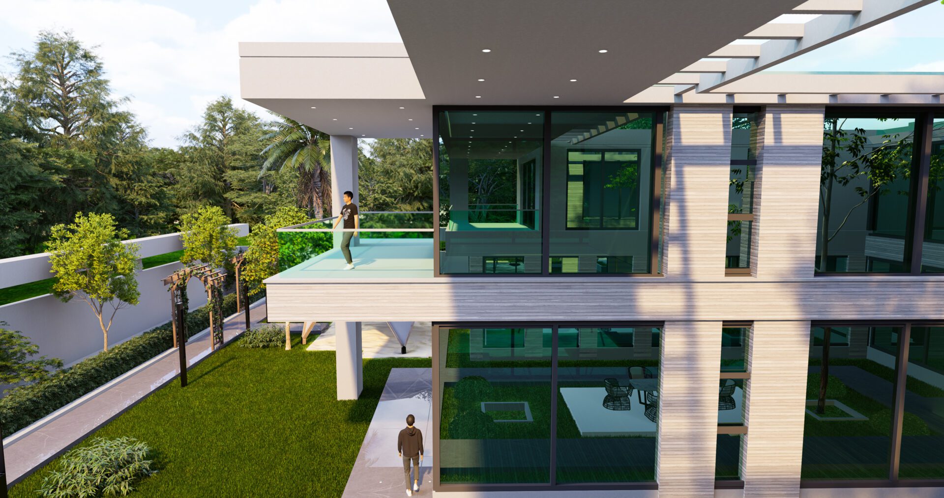 In the realm of contemporary architecture, the exterior of this Al-Hujailan Villa stands as a testament to the seamless integration of design and natural surroundings. A meticulous fusion of form and foliage creates a captivating visual symphony.