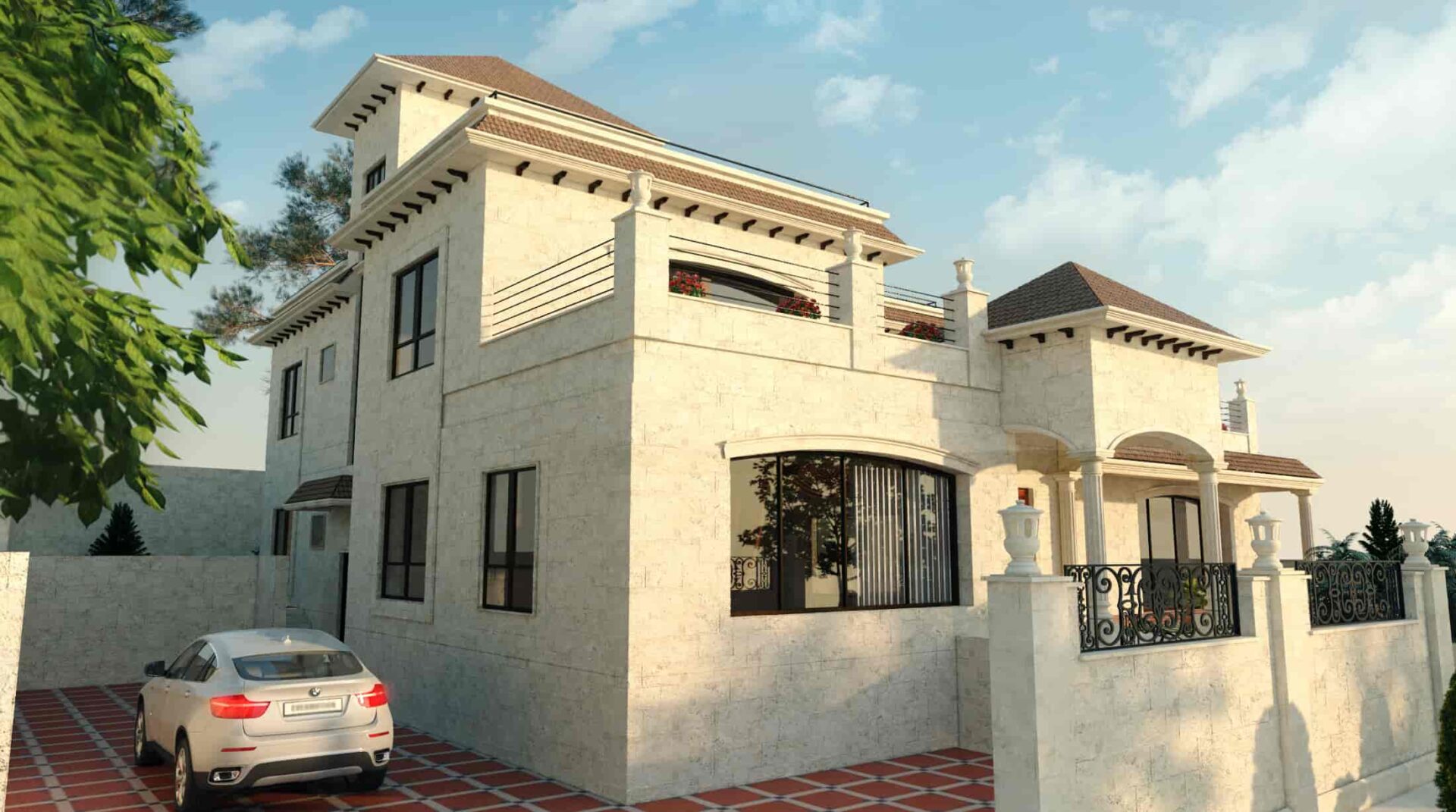 The villa’s exterior seamlessly marries classic elements with modern sensibilities. Its three floors create a sense of grandeur, while the balconies offer panoramic views of Jordan’s picturesque surroundings.
