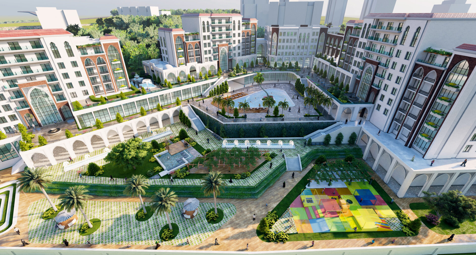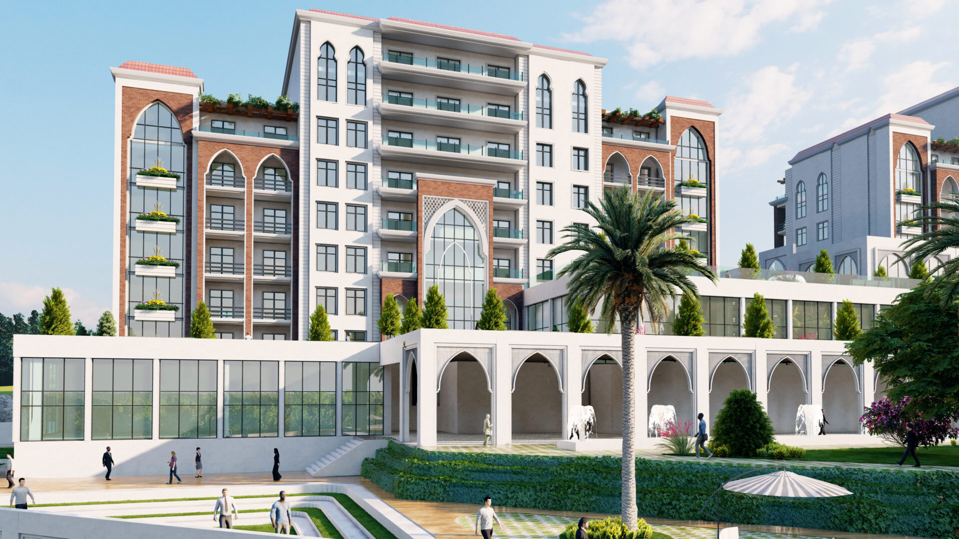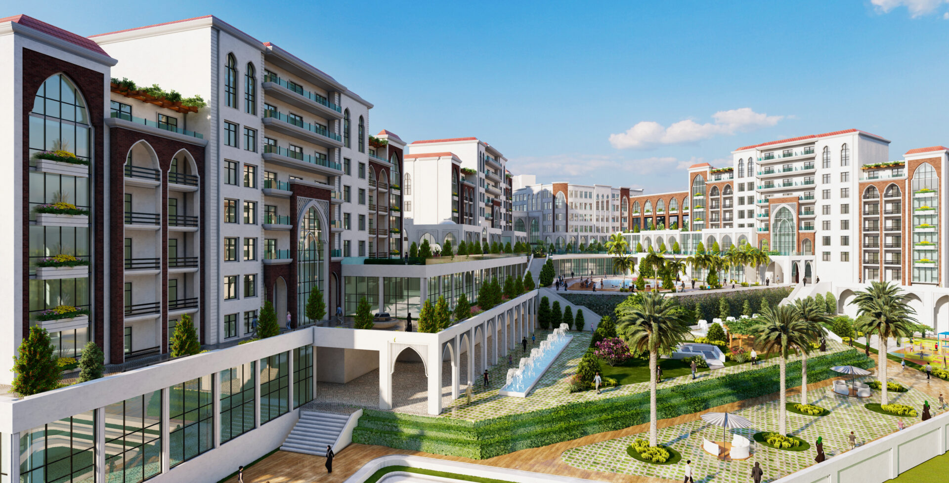 Drawing inspiration from the exquisite Andalusian architectural style, this development weaves a tapestry of harmonious colors and proportions. Comprising 250 luxurious residential apartments, the compound offers a comprehensive range of amenities and services.