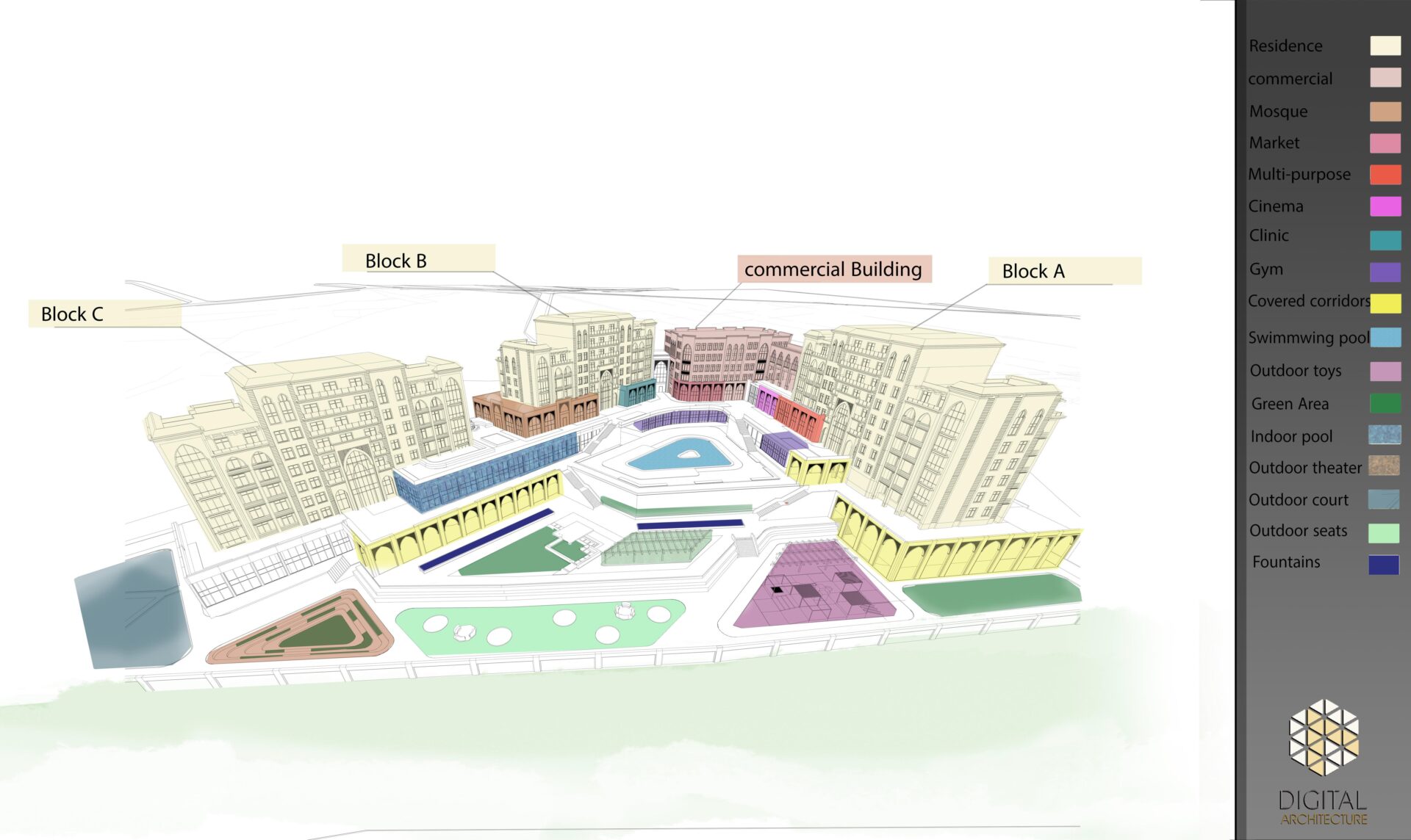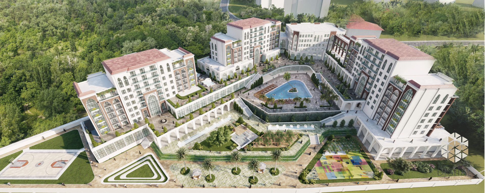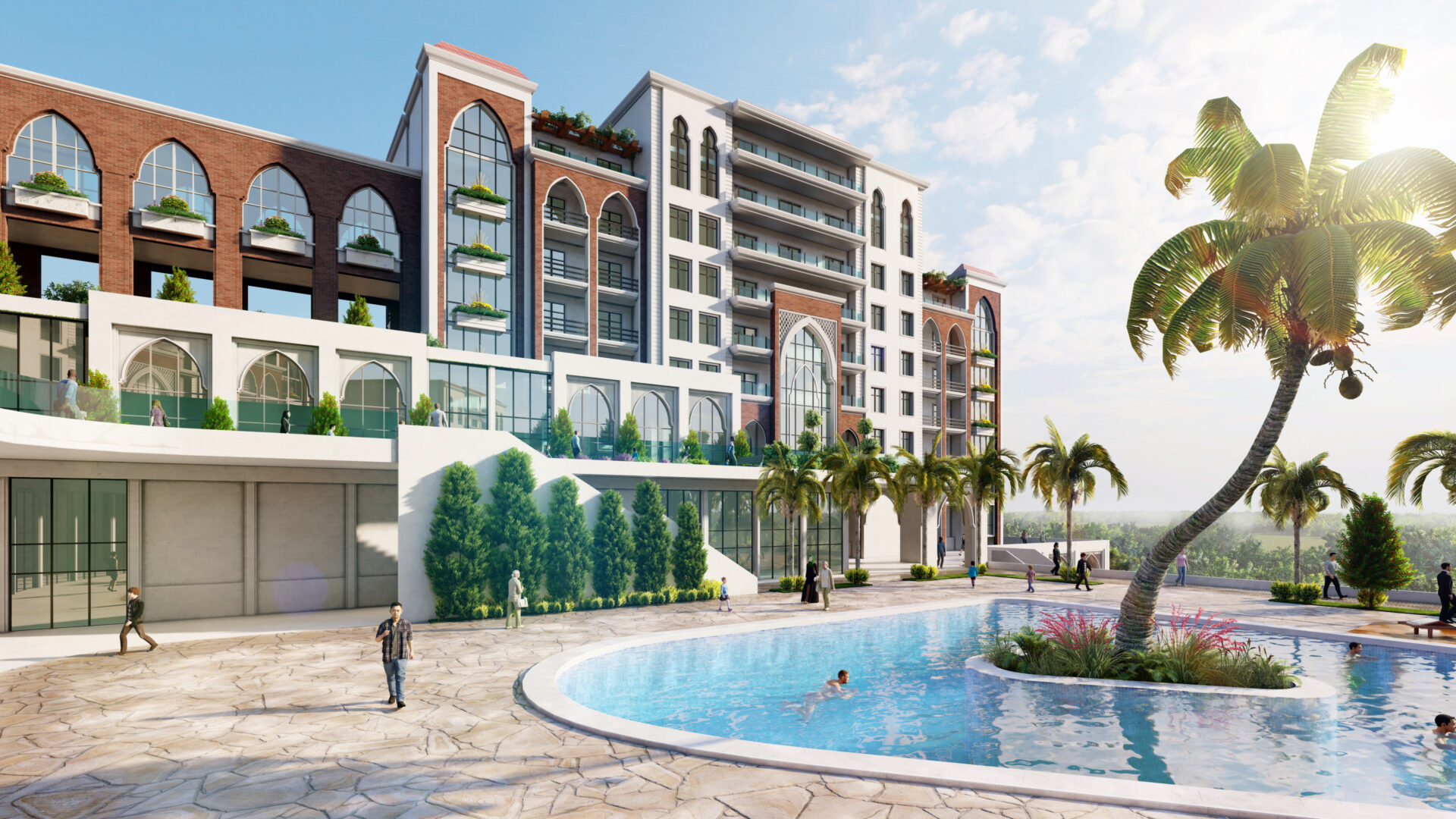 Drawing inspiration from the exquisite Andalusian architectural style, this development weaves a tapestry of harmonious colors and proportions. Comprising 250 luxurious residential apartments, the compound offers a comprehensive range of amenities and services.