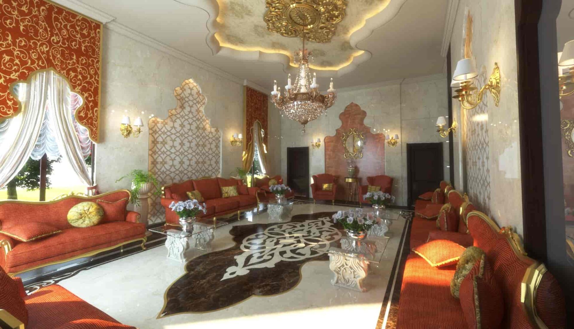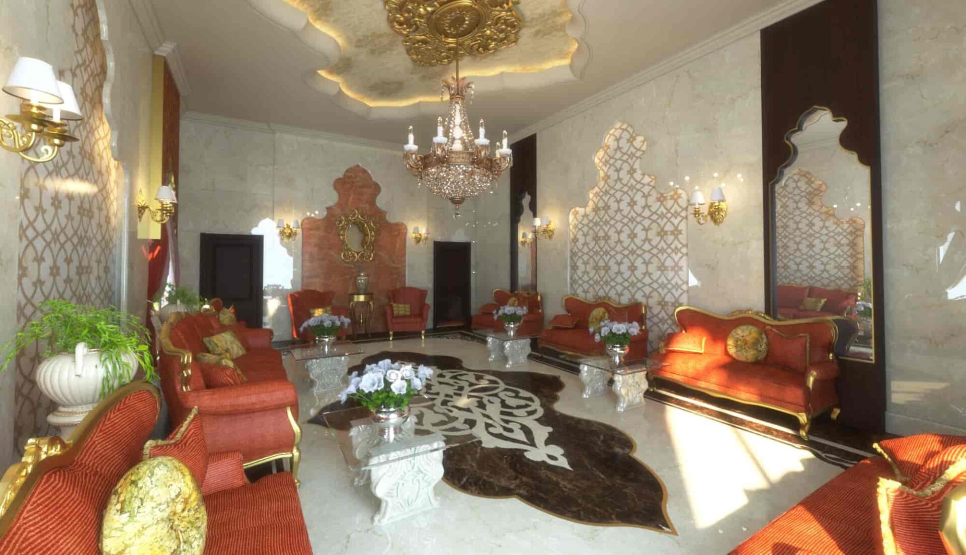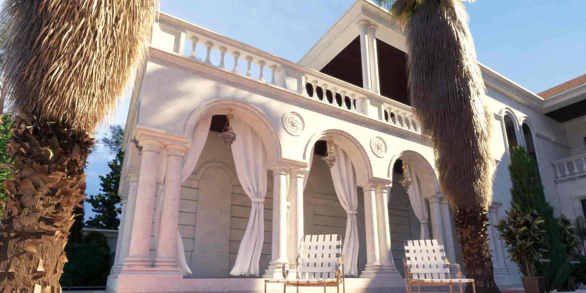 Transitioning from the outside world, the villa’s surroundings greet you with a sylvan serenity. Majestic trees, venerable in their stature, envelop the villa in a verdant embrace, casting dappled patterns of light and shadow across the grounds.