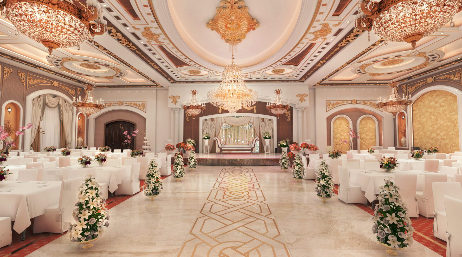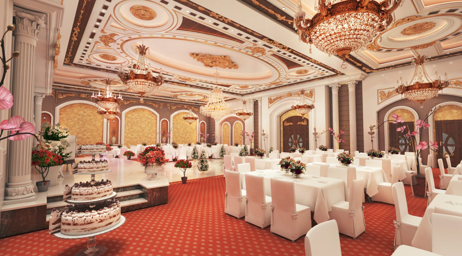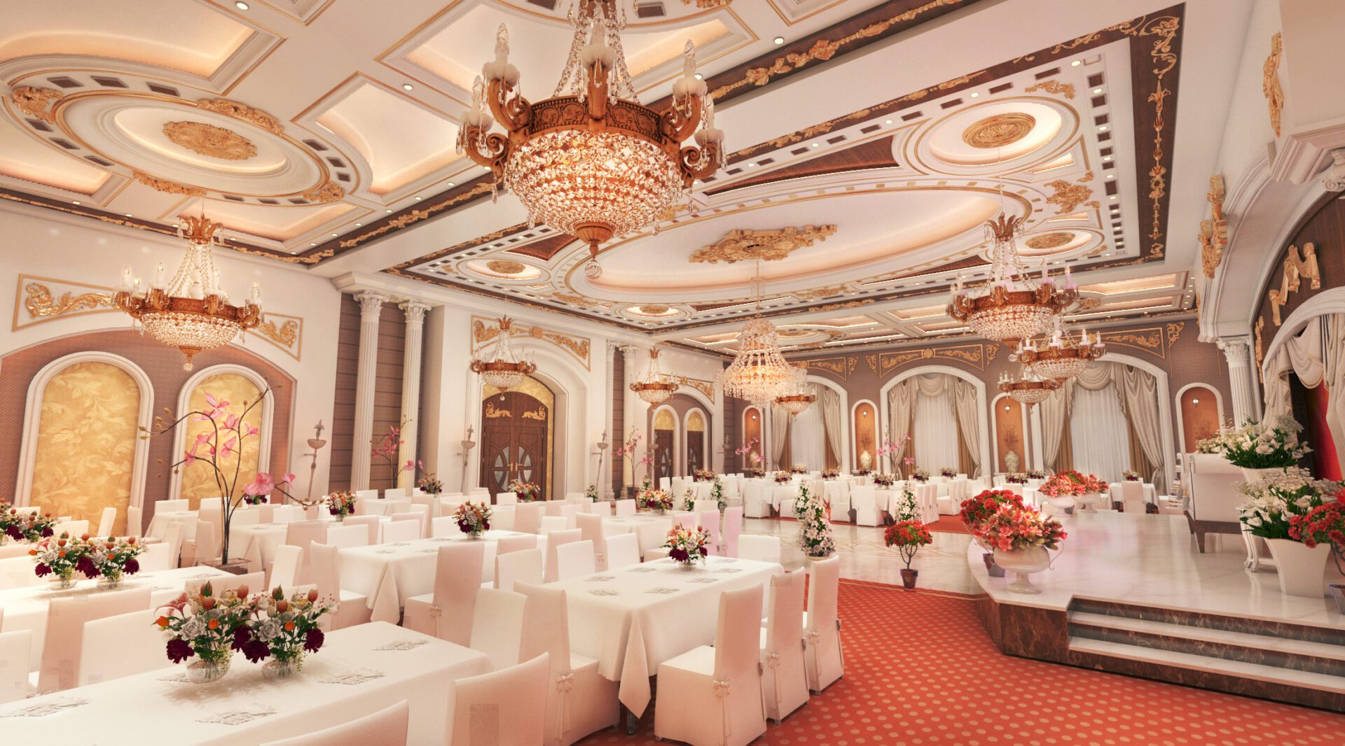 The moment you step into our wedding hall, you are greeted by a captivating play of lights. Crystal chandeliers hang like suspended stars, casting a warm, ethereal glow. The interplay of light and shadow creates an enchanting ambience, setting the stage for unforgettable moments.