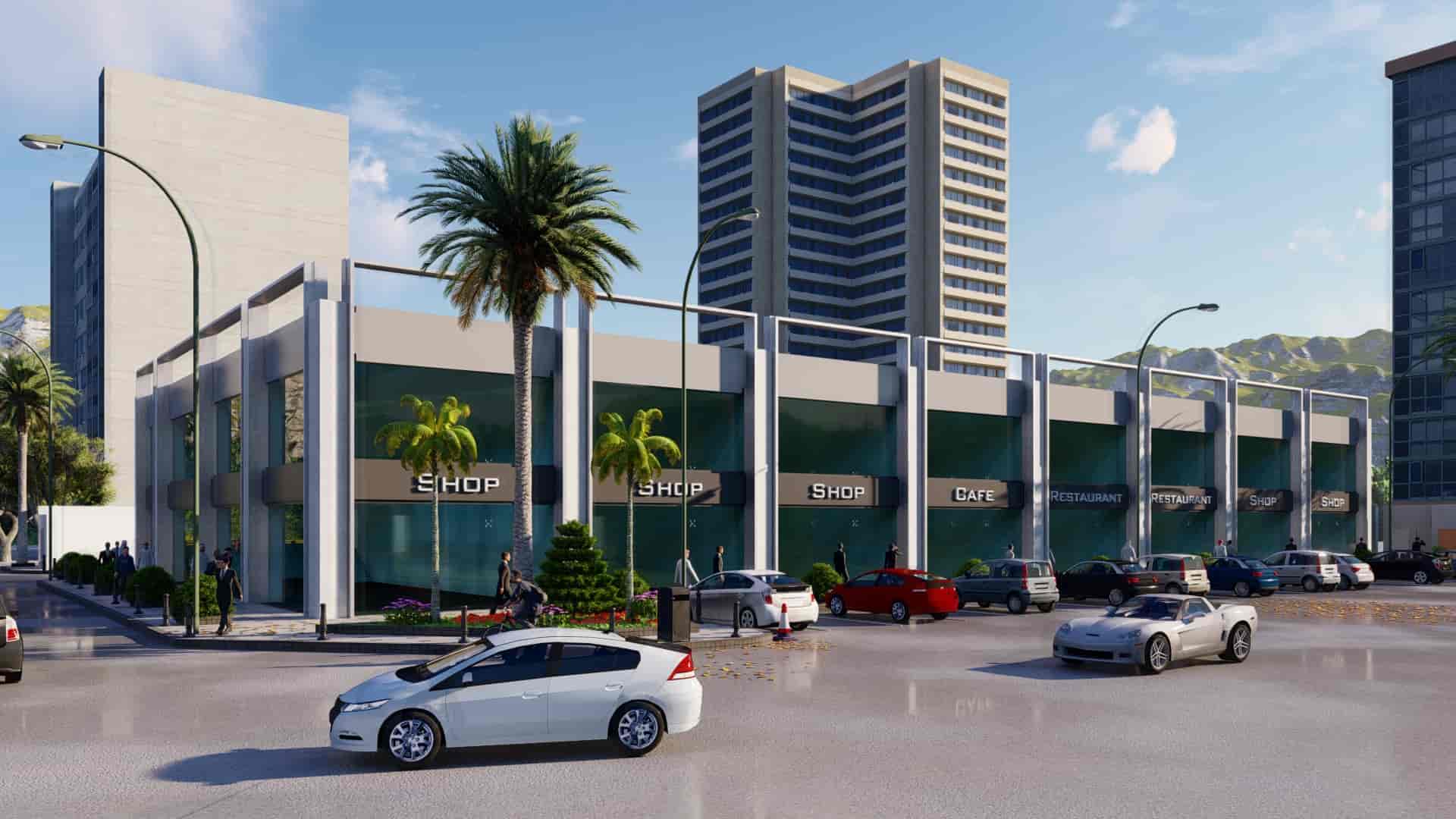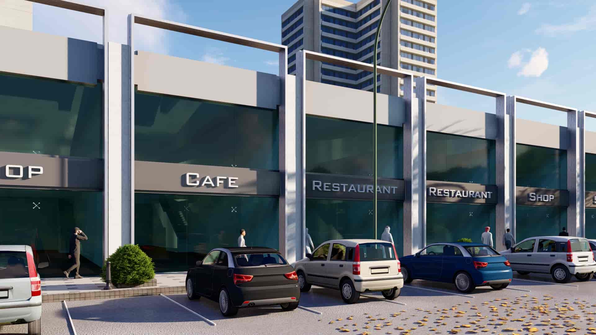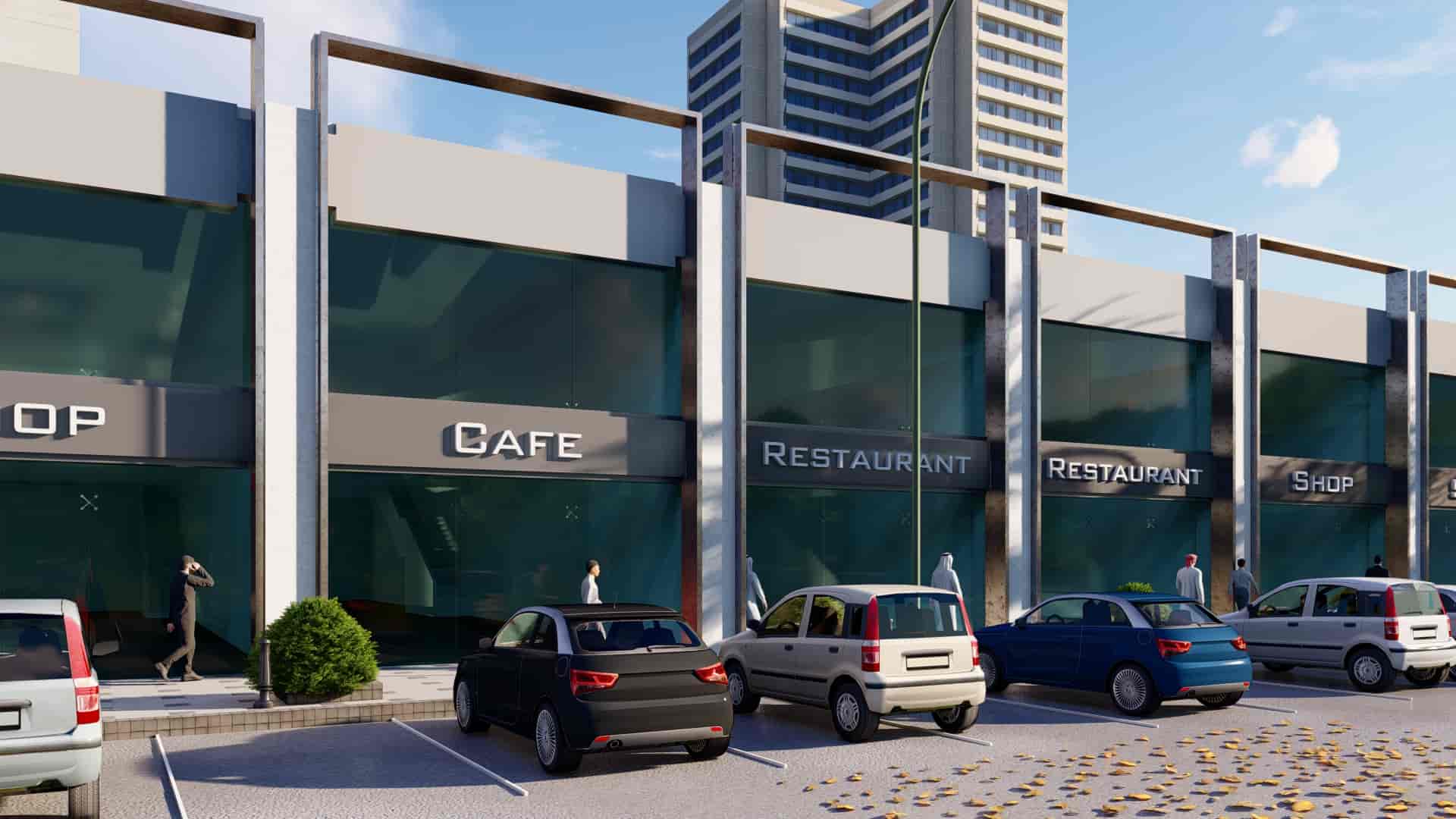 Upon first glance, the commercial complex stands tall, a testament to architectural magnificence. Its façade, adorned with intricate detailing, exudes an air of grandeur and sophistication.