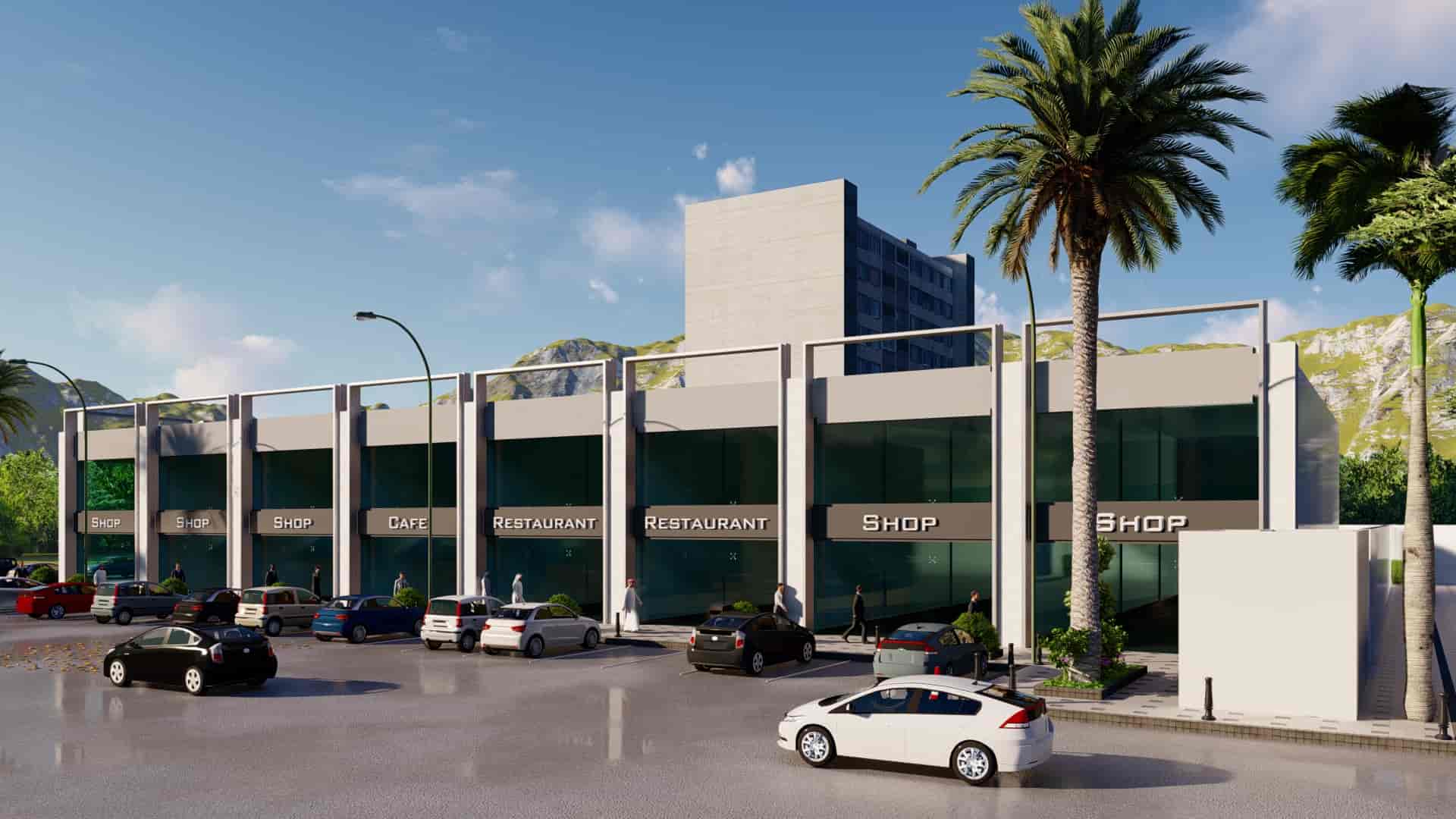Nestled beside the complex, a spacious parking area seamlessly blends practicality with aesthetics. Lined with neatly marked spaces, it ensures ease of access and egress for visitors.
